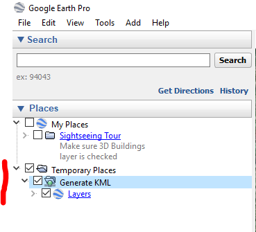 Click on the .kmz file once it downloads. It will open automatically in Google Earth and appear under your Temporary Places on the left hand side of your screen.